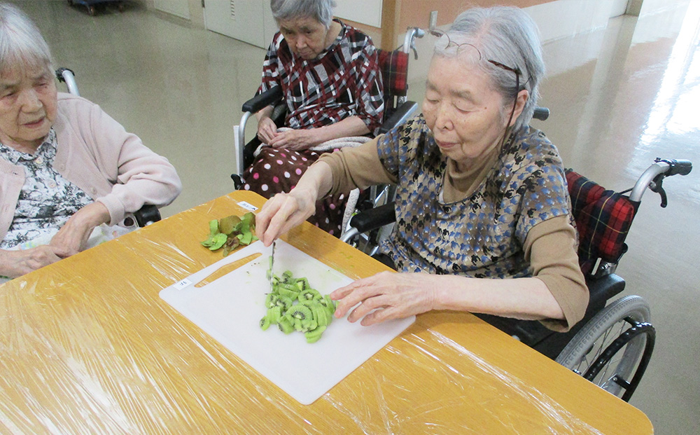 また、他の利用者の方々とのコミュニケーションや、個人の嗜好に合わせた趣味の活動時間や、屋外での園芸、グラウンドゴルフなど、施設という小さな社会の中でも、しっかりと自身の役割と存在意義を見つけ出すことを目的として、生活と社会参加に重点を置いたリハビリテーションにも力を入れて取り組んでいます。